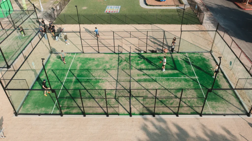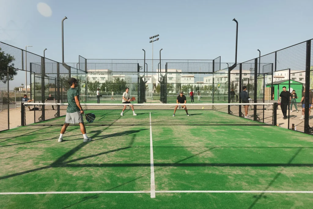 Our Padel courts have all-weather resilience, top durability and a player-friendly, safe and comfortable playing surface. Our court materials are top-quality with tempered glasses and anti-collision systems to provide a full and safe experience.
